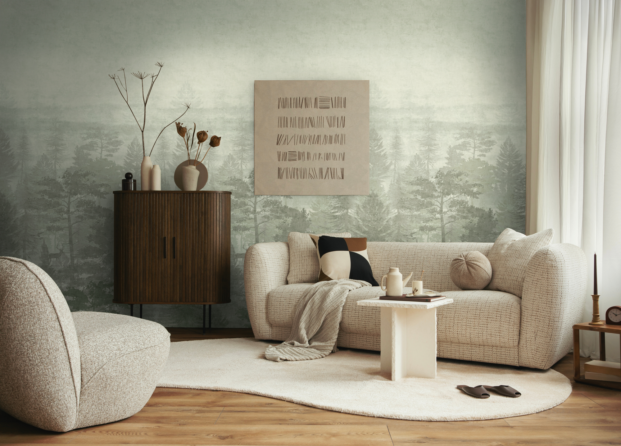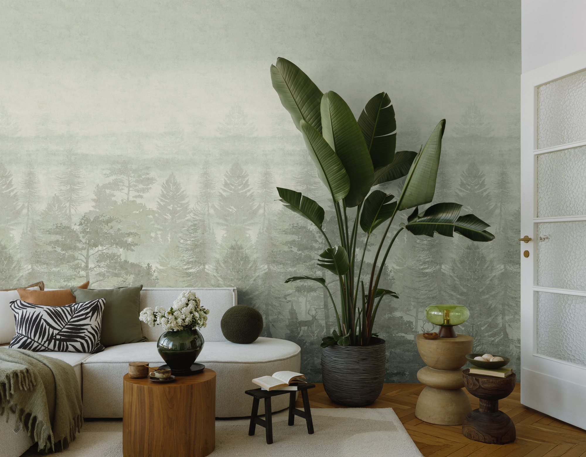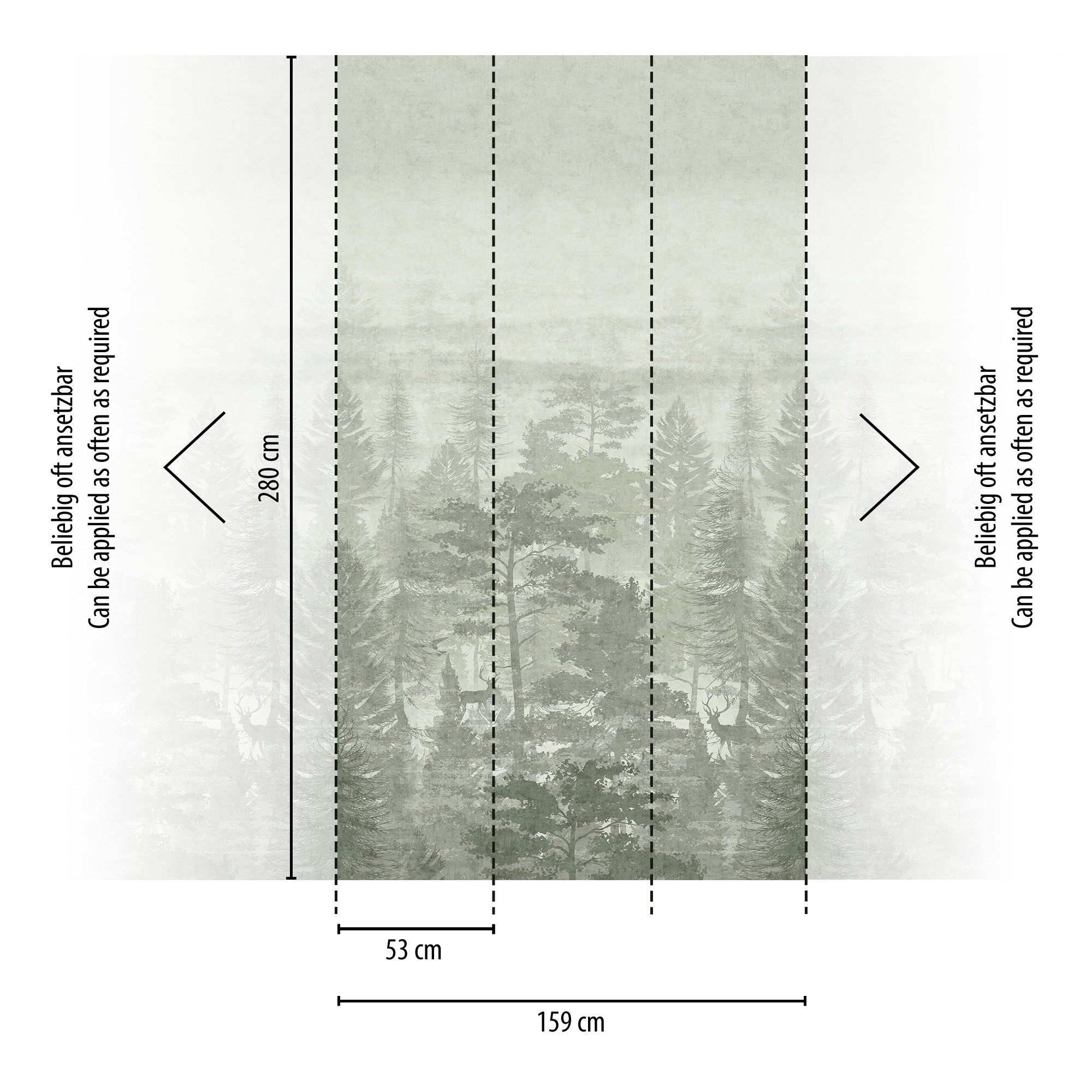 • 77069-1 Панно AS Creation 159*280, Олени в туманном лесу